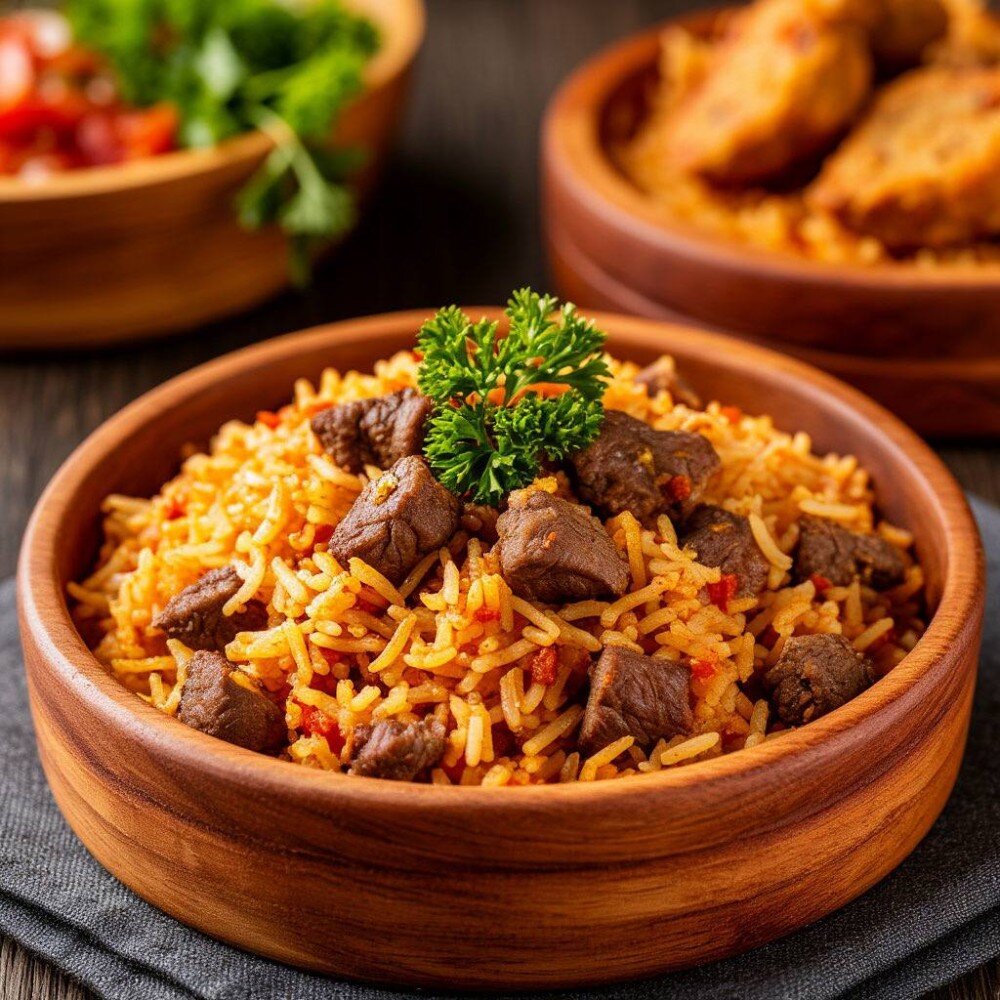 Баранина, лук репчатый, каштан, курага, изюм, рис с шафраном