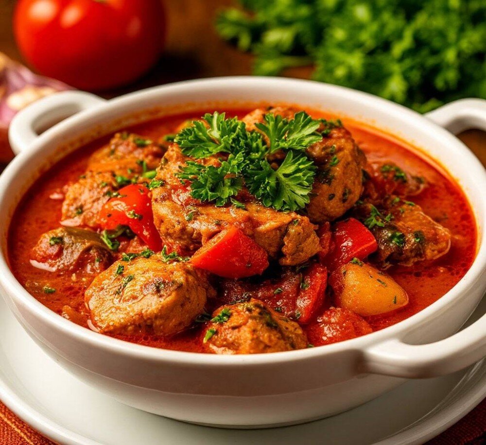 Говядина, болгарский перец, грузинские специи, микс зелени, картофель, помидоры